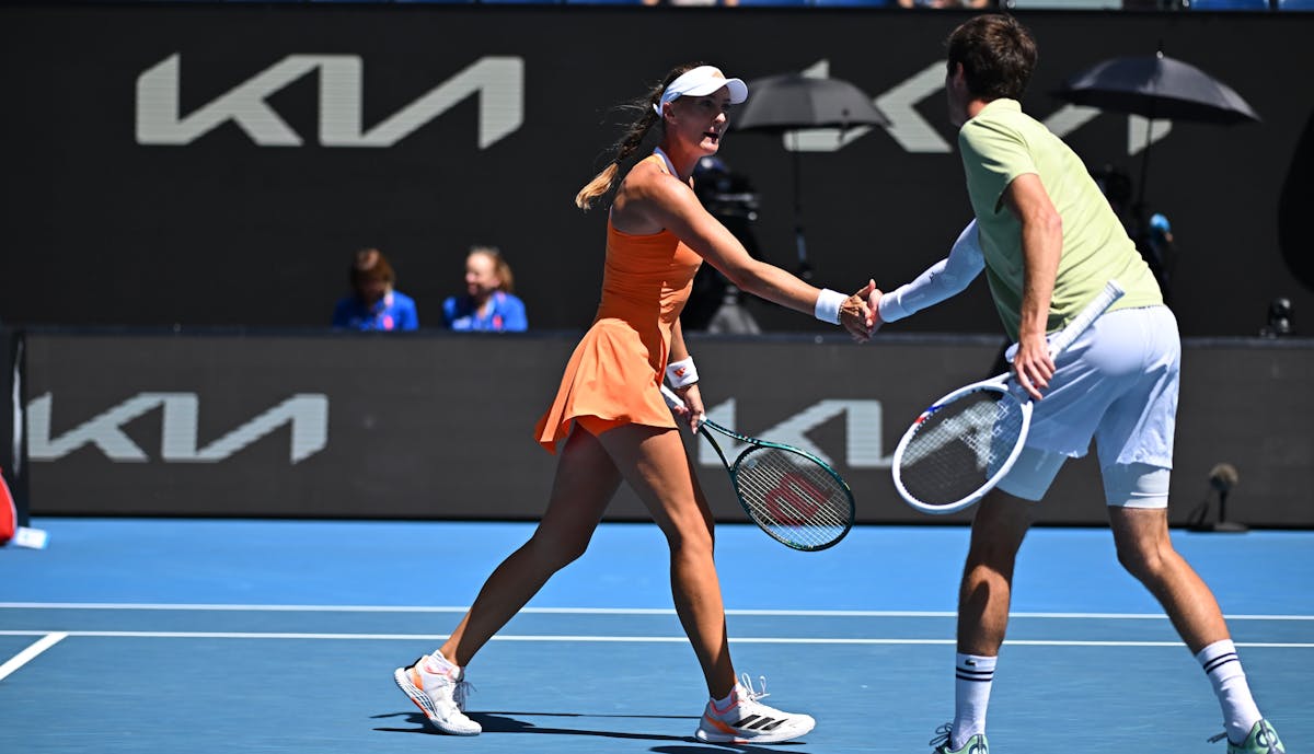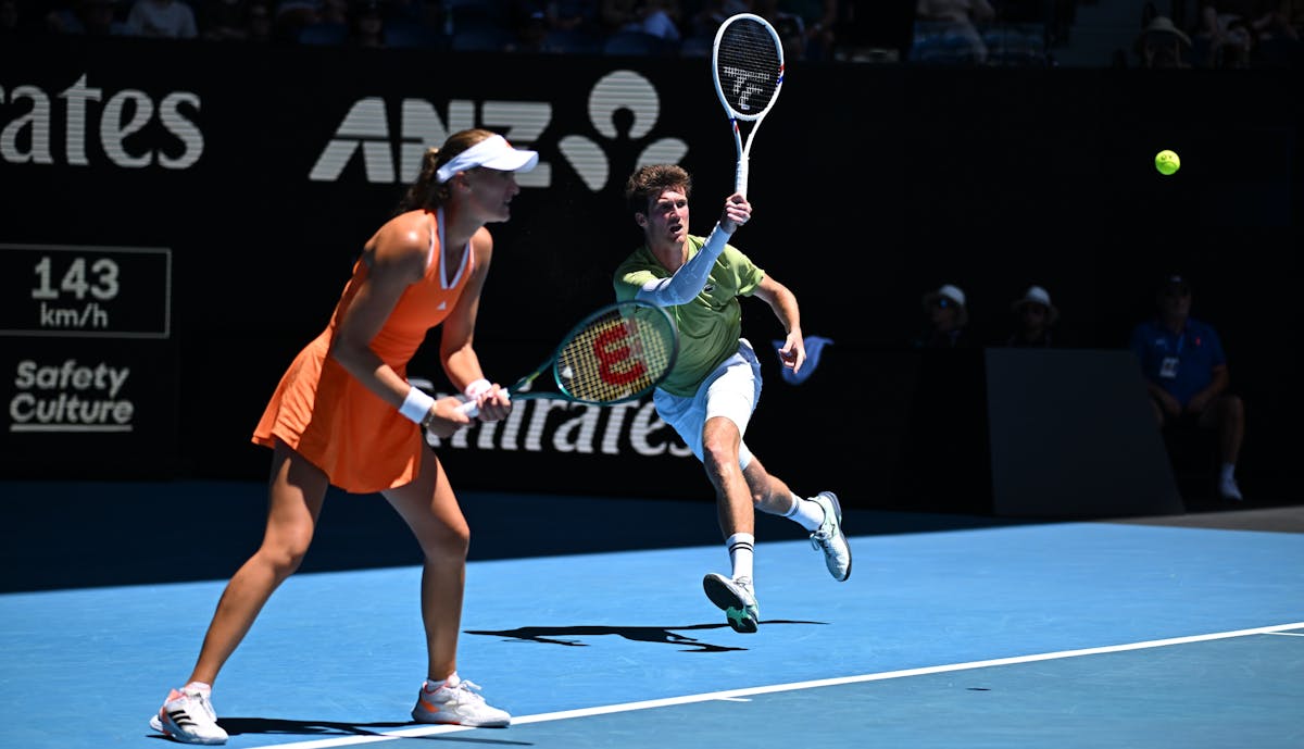 Face aux tenants du titre australiens Olivia Gadecki et John Peers, les Français ont d’abord pris l’avantage. Un break dès le premier jeu et une précision toute particulière au service (71% de premières, dont 64% de points marqués derrière, contre 56%), leur a permis de mener 5-2, avant d’empocher la première manche (6/4) sur le service de Guinard.